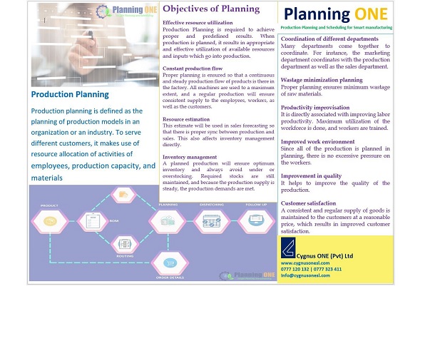 Objective of Production Planning Production planning is defined as the planning of production models in an organization or an industry. To serve different customers, it makes use of resource allocation of activities of employees, production capacity, and materials